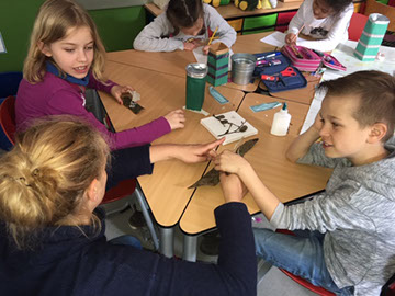 Team Mitte führt momentan viele spannende Experimente zum Thema Magnetismus durch. Wie lange schaffen wir es, eine Büroklammer schweben zu lassen? Mit welchen Magneten funktioniert es am besten? Wie bekommen wir den Haken, der oben im Korken auf dem Wasser schwimmt in die Büroklammer unten im Wasserglas, ohne mit der Hand etwas zu berühren? Welche Gegenstände, die im Sand versteckt sind, finden wir mit dem Magneten? Können wir einen Nagel zum Magneten umfunktionieren? Mit all diesen spannenden Vermutungen und Beobachtungen setzen wir uns gerade auseinander und halten es im Forscherheft fest. Großartig, wie motiviert unsere Kinder gemeinsam forschen. Dazu verbinden sie direkt unsere neue Gedichtform Elfchen, die wir im Deutschunterricht kennengelernt haben: