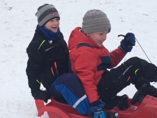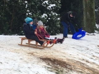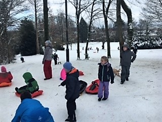 Am Donnerstag tummelten sich nachmittags schon sehr viele Parkschulkinder in ihrer Freizeit im Stadtpark, denn der Schnee lockte zum Glück ganz viele nach draußen. Am Freitag gab es für jedes Team eine Stunde Rodeln statt Sport, Mathe oder Deutsch. Wer weiß, wie viele Gelegenheiten der Winter noch bringt… Nicht nur die Kinder hatten großen Spaß und der Schnee hat trotz Tauwetter bis zum Schulschluss gehalten. Wer nicht mehr selber fahren wollte konnte sich von Keks, der heute als Schlittenhund gearbeitet hat, um die Stadtparkwiese ziehen lassen.