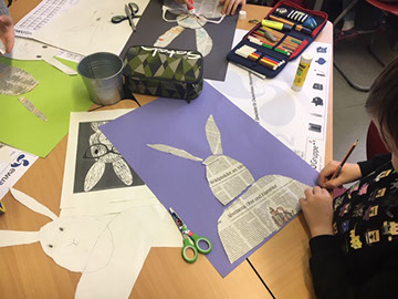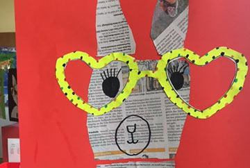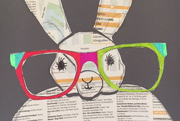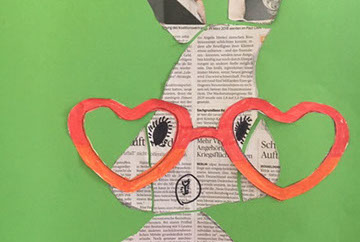 Karneval ist vorbei und schon schauen die Osterhasen vorbei! Am musisch kreativen Tag standen im Team Nord die Hasen auf dem Programm! Nach genauen Betrachtungen und vielen Vorzeichnungen und Skizzen wurden Hasenköpfe mit langen Löffeln auf Zeitungspapier gezeichnet, ausgeschnitten und in Einzelteilen auf bunte Pappen geklebt! Zum Schluss wurden sie mit pfiffigen bunten Brillen dekoriert! Die lustigen Schlauköpfe sorgten am Montag in allen vier Klassen für viel Spaß!!!