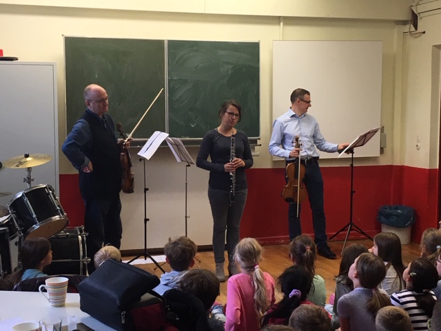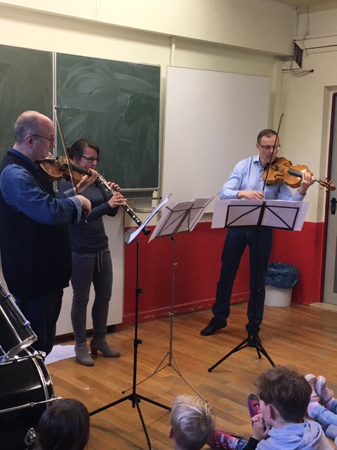 Der heutige musisch kreative Tag im Team Nord hatte von allem etwas! In Anlehnung an Pablo Picasso gestalteten alle Kinder eine Collage mit einem Zupf- oder Streichinstrument. Außerdem gab es Besuch von dem Wuppertaler Symphonieorchester. Drei Musiker führten uns mit einer Violine, einer Viola und einer Oboe in das Orchester sowie in die Kompositionen von Wolfgang Amadeus Mozart ein und bereiteten uns somit auf das Konzert vor, das wir nächste Woche gemeinsam besuchen werden. Die Musiker beantworteten heute schon viele Fragen und einige Kinder durften in die Rolle des Dirigenten schlüpfen. Nun sind wir alle ganz gespannt auf das Konzert in der historischen Stadthalle in Wuppertal...