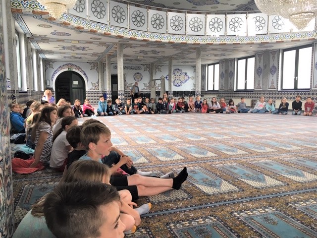 Die drei evangelischen Religionsgruppen besuchten heute die Moschee in Wülfrath! Besonders beeindruckt waren wir von dem riesengroßen Teppich, den wunderschönen Wandmalereien und den großen Kronleuchtern! Herr Karamann beantwortete all unsere Fragen! Mit vielen tollen Eindrücken sagen wir Dankeschön dafür!!!!