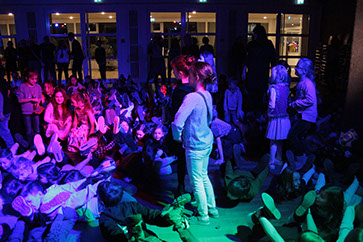 So, genauso hatte ich mir meinen Abschied von der Parkschule vorgestellt! Ungezwungen, meistens lustig, laut und sehr lebendig! Schon am Freitagmorgen wurde eine Extrasendung der Parkschulwelle gesendet. Die Radio-AG hatte unter der Leitung von Karsten Milotta wieder einmal eine tolle Sendung aufgenommen. Da bekam auch ich manchmal beim Zuhören feuchte Augen und es flossen einige Tränen. Aber über die abwechslungsreiche Werbung für Grauköpfe und Brillenträger im Pensionsalter mussten dann doch wieder alle lachen. Am Abend ging es dann fetzig weiter bei der Tschüss-Party im Paul-Ludowigs-Haus. Die Stimmung war von der ersten Sekunde an grandios. Der Duft von Popcorn stieg den Besuchern schon beim Einlass in die Nase und die Slush-Eis Maschine arbeitete auch schnell auf vollen Touren. Doch nachdem die Kinder sich hier gestärkt hatten, zog es alle auf die Tanzfläche. Dort sorgte der extra engagierte DJ Patrik für die passenden Hits. Frithjof Kuhlmann hatte coole Discoeffekte auf Lager: Flammen stiegen auf, es gab eine Nebelmaschine und eine Süßigkeitenkanone. Karsten Milotta schaffte es schnell, auch bei den schüchternen Tänzern das Eis zu brechen. Nach einer Runde Stopptanz ging es auf der Tanzfläche hoch her. Zwischendurch konnten sich hungrige Tänzerinnen und Tänzer mit Würstchen, Frikadellen und Rohkost stärken. Kühle Getränke und sogar Kindercocktails standen für alle bereit. Als der DJ das Lied „We will rock you“ spielte, starteten die Kinder einen Flashmob, der mit der Übergabe des Abschiedsgeschenkes endete. Nun wurde es doch noch ein wenig wehmütig. Mitarbeiter und Kinder hatten zur Erinnerung eine tolle Mosaiksäule gebastelt, die sicher einen Ehrenplatz bekommen wird. Von den meisten Kindern und Eltern konnte ich mich zum Schluss selbst verabschieden. Vielen Dank für alle guten Wünsche, alle wohltuenden Worte, kleine und große Geschenke, sogar einen Besuch in Venedig! Ich habe mich sehr darüber gefreut!