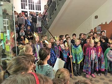 Auch in diesem Jahr waren die Parkschüler wieder mit einer Gruppe bei der Sternsingeraktion fleißig dabei. Frau Friedrich ist mit den Kindern in den Ferien von Tür zu Tür rund um die Parkschule gezogen. Am Dienstag haben uns alle Sternsinger den Segen in die Schule gebracht. Insgesamt konnten die Kinder 703 € sammeln. Allen Spendern ein herzliches Dankeschön und besonders an die fleißigen Sammler. Das habt ihr toll gemacht!