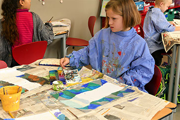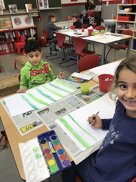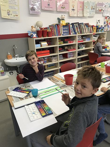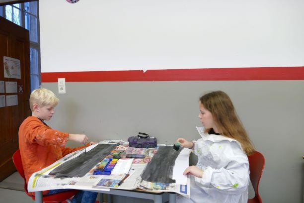 Wenn die Wetterfrösche uns keinen richtigen Winter bescheren wollen, dann müssen wir ihn uns halt malen. Die Kinder aus Team Süd haben am kreativen Freitag Werke des Künstlers Ton Schulten betrachtet und dann eigene Landschaften mit Wasserfarbe auf das Papier gezaubert. Dabei haben sie durch die Farben für winterliche Stimmung gesorgt. Und wenn es Fragen gab, wie man die passende Farbe am besten mischt, dann wurde gemeinsam ausprobiert und beraten. Und wenn es jetzt immer noch nicht schneit? Dann malen wir schnell alle Bilder fertig und hängen sie in der Klasse auf!
