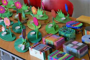 Nach den Osterferien fing heute für alle die Schule wieder an. Für die Kinder und Erwachsenen der Parkschule gab es einen besonderen Einstieg nach den Ferien. In einer kreativen Frühlingswoche malen, basteln, kleben und werkeln alle für das bevorstehende Frühlingsfest am Freitag. Die Kinder in der OGATA waren bereits in den Ferien sehr fleißig und haben schon tolle Sachen hergestellt. Hier und heute gibt es aber nur einen kleinen Einblick, denn zu viel soll noch nicht verraten werden! Wer alle großen und kleinen Kunstwerke bewundern oder auch etwas für Wohnung oder Garten kaufen möchte, der muss am Freitag selber kommen.