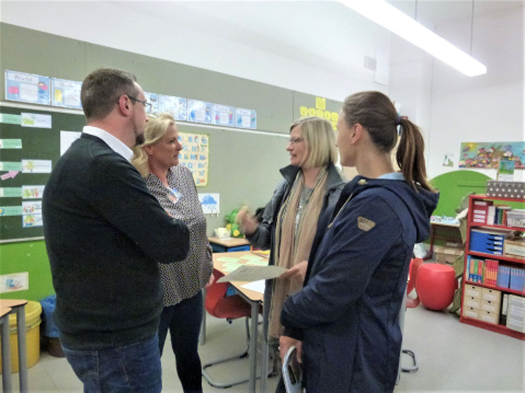 anzuschauen. In den Gesprächen ging es um den Anfangsunterricht in Mathematik und Deutsch, Sport- und Englischunterricht an der Grundschule, die