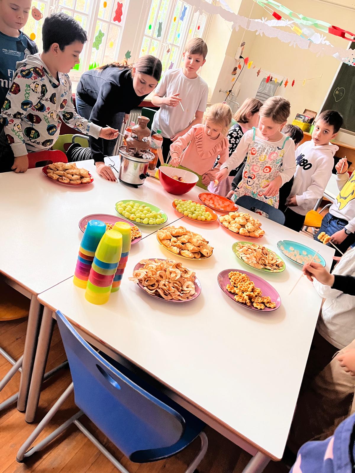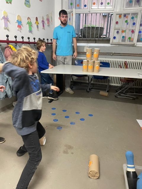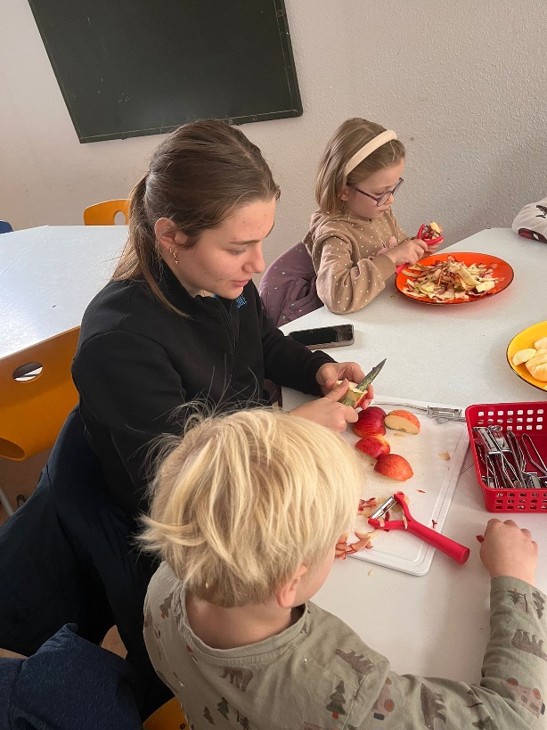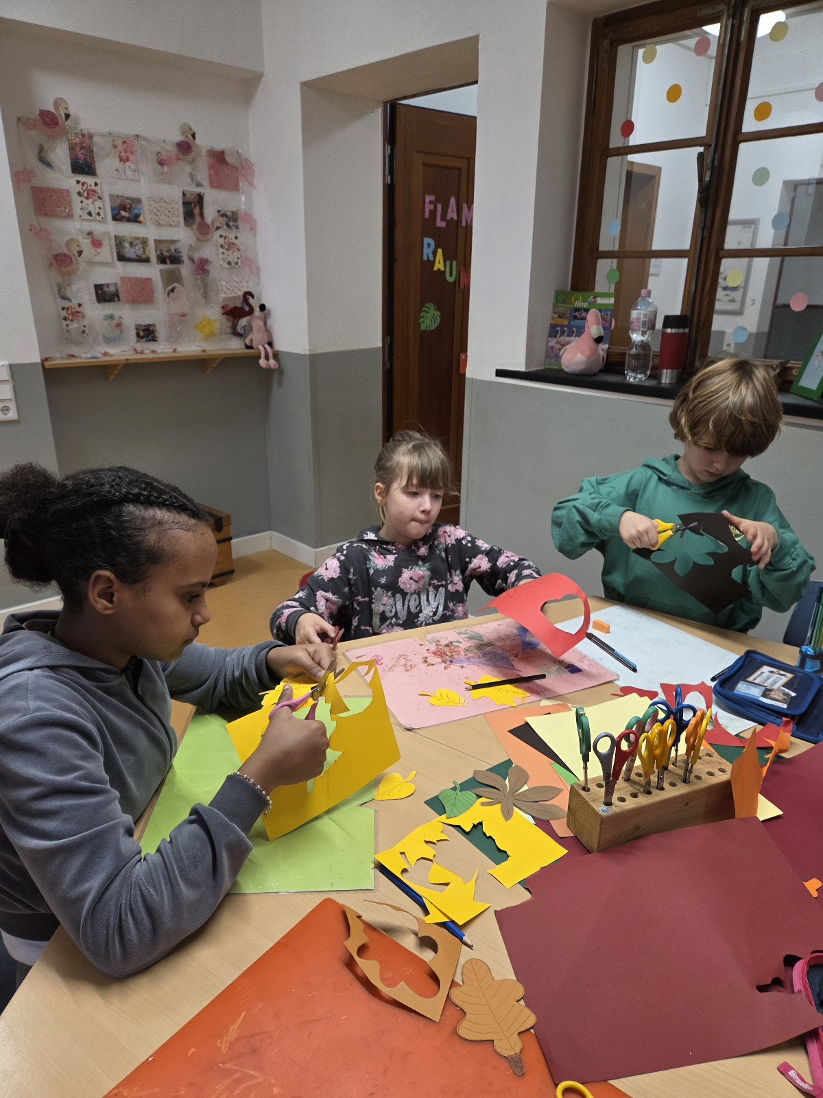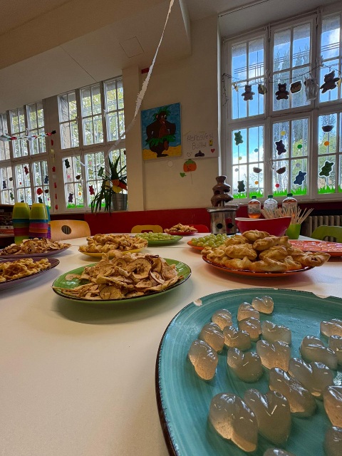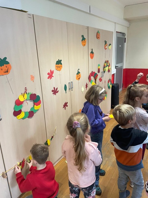 Der Herbst hält Einzug in unserer kleinen Stadt! In den Ferien wurde Eulenfels wieder lebendig und die Stadtentwicklung ging weiter. Das Straßennetz wurde mit Verkehrsschildern versehen und wir haben uns mit dem Thema Müllentsorgung und Recycling beschäftigt – Eulenfels ist eine nachhaltige und umweltfreundliche Kommune! Als Selbstversorger konnten wir uns über eine reiche Apfelernte freuen, die wir in vielfältiger Weise verarbeitet haben: Apfelmus, Apfelringe, Apfelsaft, Apfelkuchen, Apfelmuffins, Gummibärchen und Blätterteigtaschen. Auch die Infrastruktur hat Bereicherungen erfahren; so befassten wir uns mit dem Beruf des Optikers und beschäftigten uns mit dem Theater in Form eines Kamishibais. Außerdem haben die Kinder das Herbstfest in Eulenfels geplant, vorbereitet und sehr erfolgreich mit viel Freude durchgeführt. Es gab verschiedene Stände wie z.B. Dosenwerfen, einen Kastanienparcours, ein selbst entworfenes Herbstquiz, eine Disco, in der viel getanzt wurde, eine Bastelstation im Zeichen der Eule und natürlich unser selbstgemachtes Buffet mit einem Schokobrunnen als Highlight. Am Ende der zweiten Woche besuchten wir das Eulenfelskino im Bärenraum und haben die Herbstferien dem stürmischen Wetter entsprechend ausklingen lassen. Wir sind gespannt, ob das Christkind die neue Stadt Eulenfels finden wird…Allen ein gemütliches Herbstwochenende und einen guten Start am Montag!