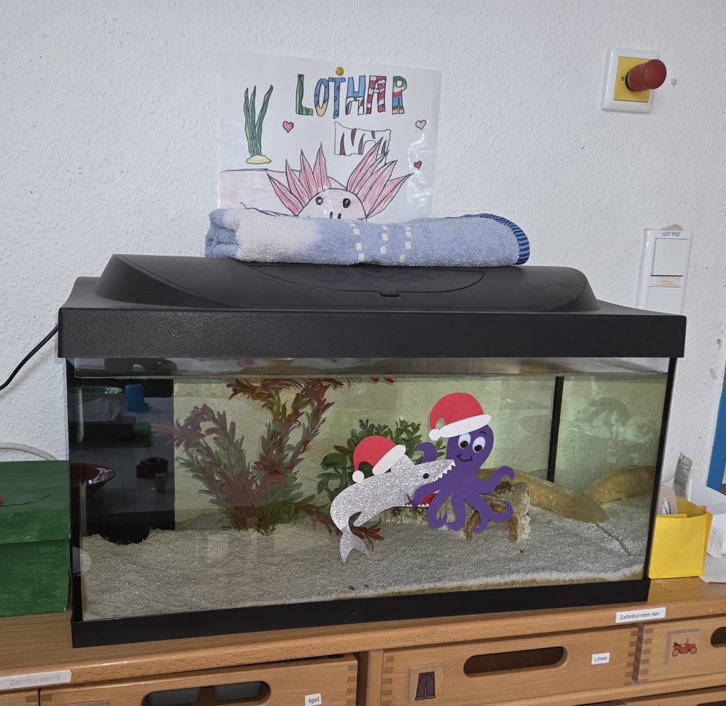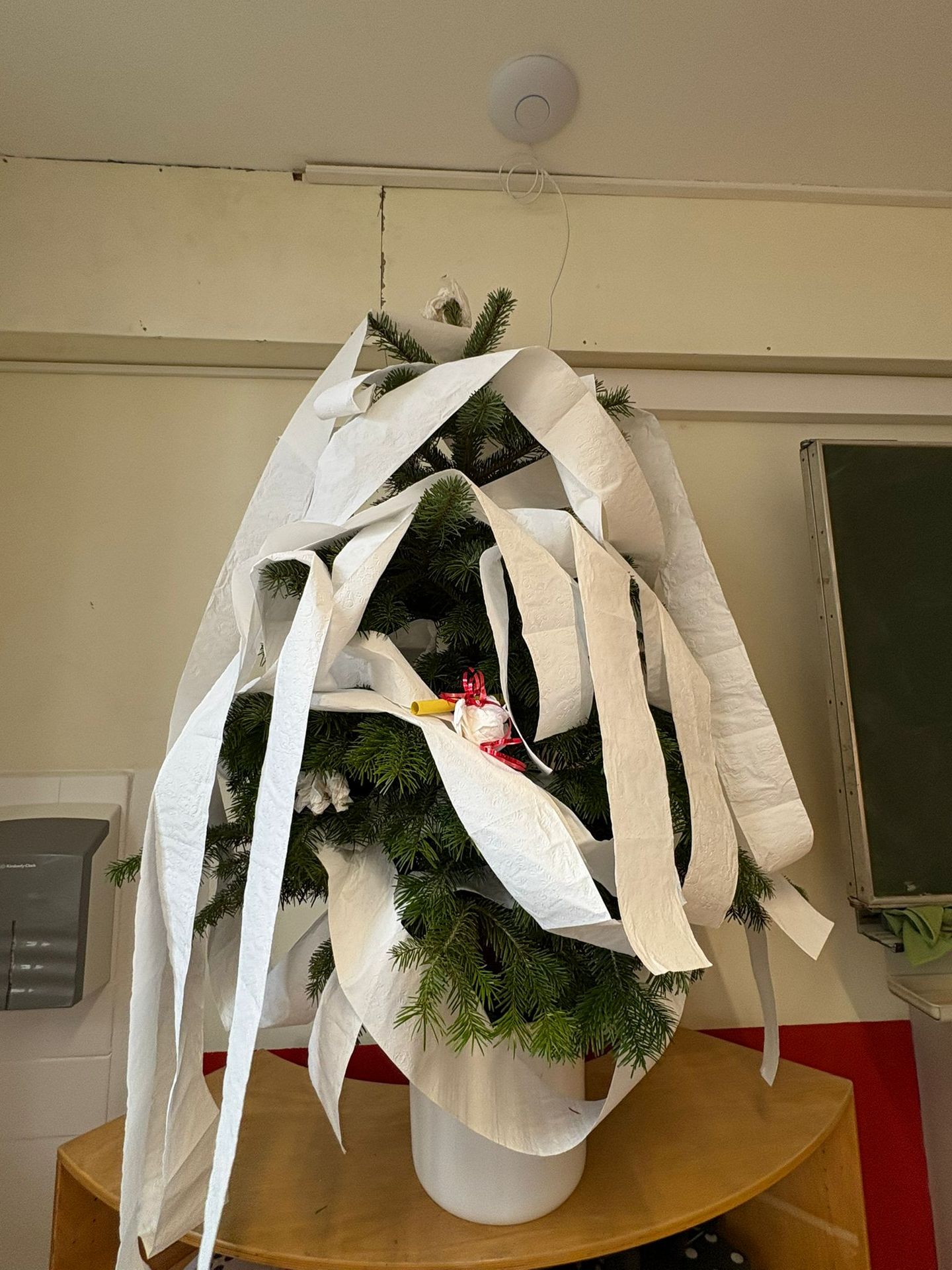 Nachdem unser geheimnisvoller Besucher sich in einem Brief an die Kinder zu erkennen gegeben hat, war es klar: In der OGATA ist ein echter Weihnachtswichtel mit dem Namen Parki Ogati eingezogen! Er hat es in der ersten Dezemberwoche ganz schön bunt getrieben und Klein und Groß mit einer Überraschung an jedem neuen Tag auf Trab gehalten: Strategisch angeordnete Stühle im Speisesaal, ein wildes Spielmaterialdurcheinander, überall verteilte Papphülsen und als Krönung ein mit Toilettenpapier eingewickelter Tannenbaum! Außerdem ist ein Hai in unserem Aquarium eingezogen, der es vielleicht auf unsere Axolotls abgesehen hatte, und dann doch mit einem großen Kraken vorliebgenommen hat.Parki Ogati hat aber nicht nur Chaos verbreitet, sondern den Kindern auch tolle Geschenke und Aktionen mitgebracht: Filzstifte in bunten Farben, Wichtel-Ausmalbilder, spannende Gesellschaftsspiele und Handbälle. Wir haben alles mit Begeisterung direkt ausprobiert und in unserer Wichtelwerkstatt natürlich auch dafür gesorgt, dass unser Weihnachtsbaum eine festliche Dekoration erhält!Da unser OGATA-Tannenbaum nicht gefällt wurde, und nach den Festtagen für ein langes, grünes Leben wieder draußen eingepflanzt wird, haben wir einen kleinen Beitrag für eine nachhaltige Weihnachtszeit geleistet.Mal schauen, was Parki sich über das Wochenende für die zweite Dezemberwoche einfallen lässt… Langweilig wird es sicher nicht mit unserem Wichtel! Wir wünschen allen einen schönen Nikolaustag, einen besinnlichen zweiten Advent und ein erholsames Wochenende!