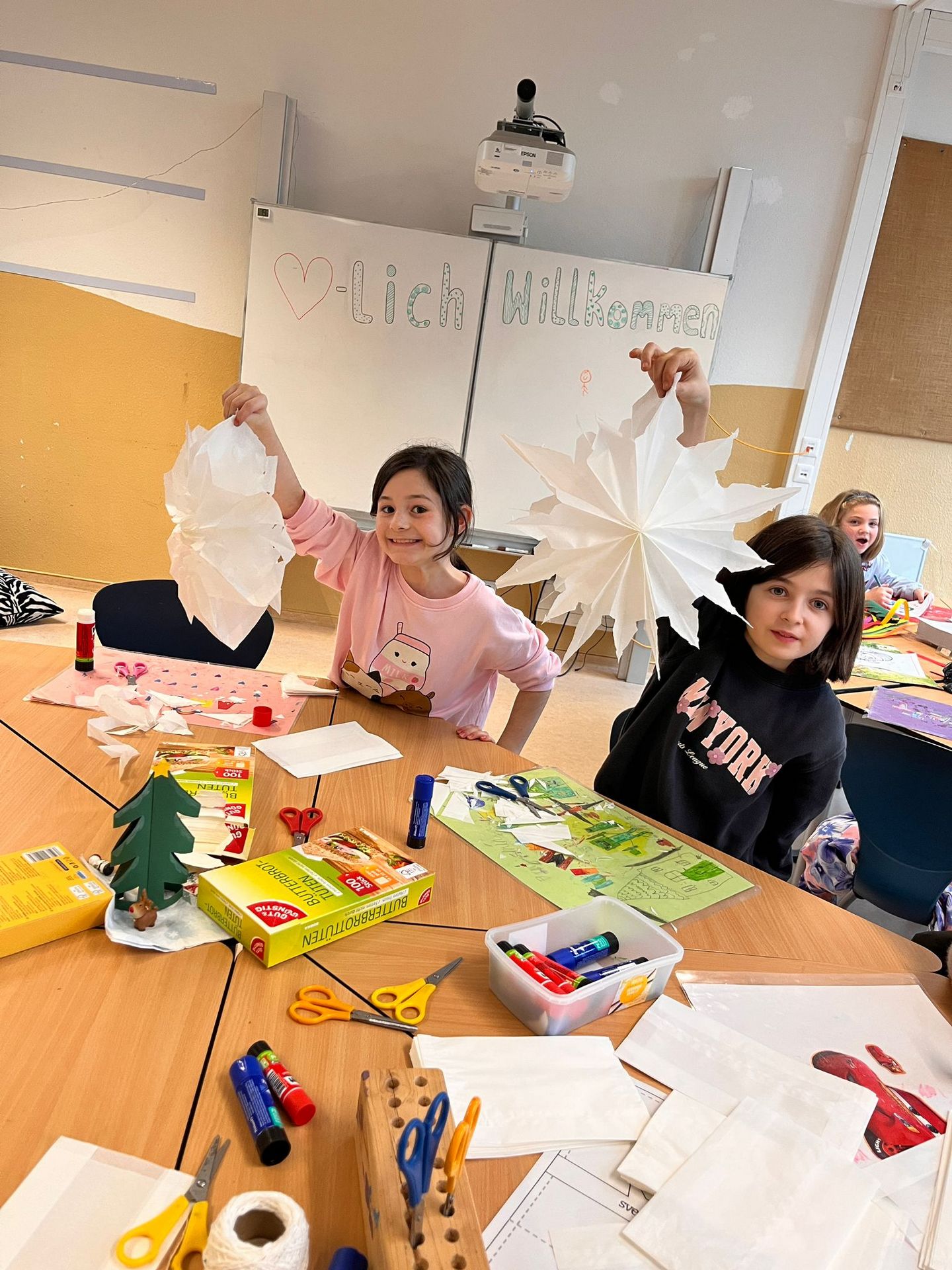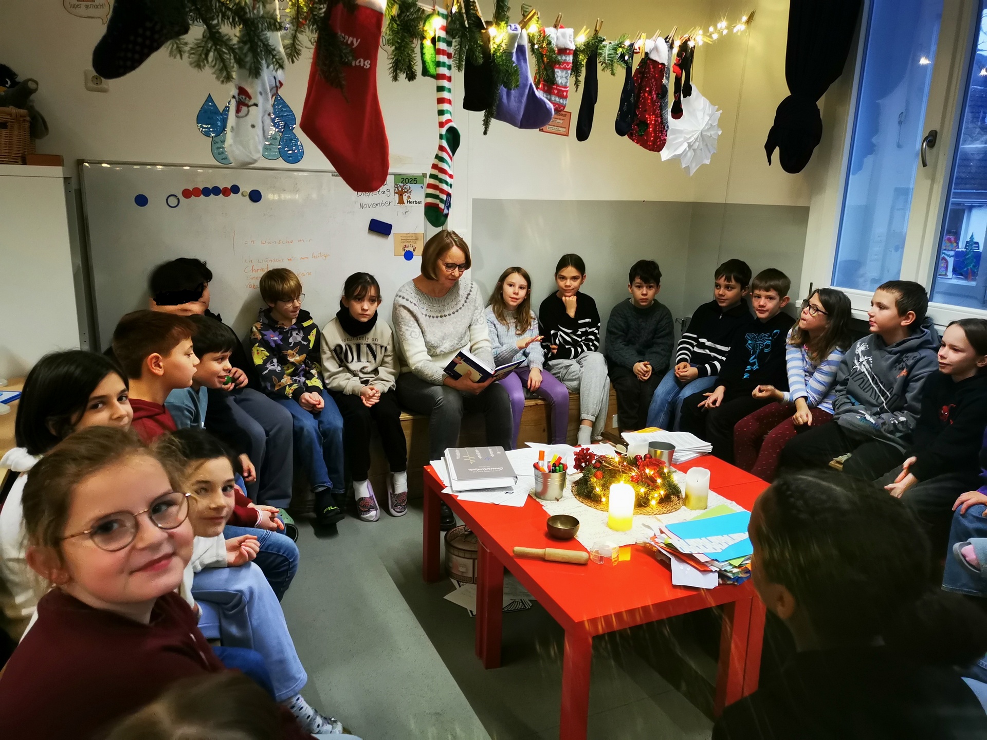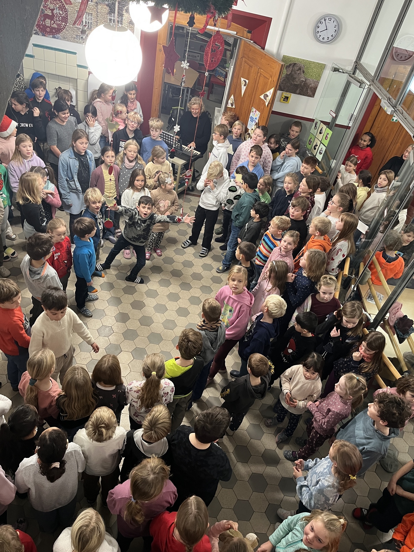 Auch in diesem Jahr treffen sich alle Klassen montags zum Adventssingen im weihnachtlich geschmückten Treppenhaus. Vom Lied „Lebendiger Adventskalender” bis „Fröhliche Weihnacht” klingen die Lieder alle Jahre wieder von so vielen Stimmen gemeinsam gesungen immer wieder am schönsten. Täglich lesen alle Klassen Geschichten und es bekommt ein Kind aus jeder Klasse ein kleines Wichtelgeschenk. An den anstehenden kreativen Tagen wird im Geheimen geschneidert, gehämmert und gebastelt, so dass jedem klar ist: Bis Weihnachten ist´s nicht mehr weit!
