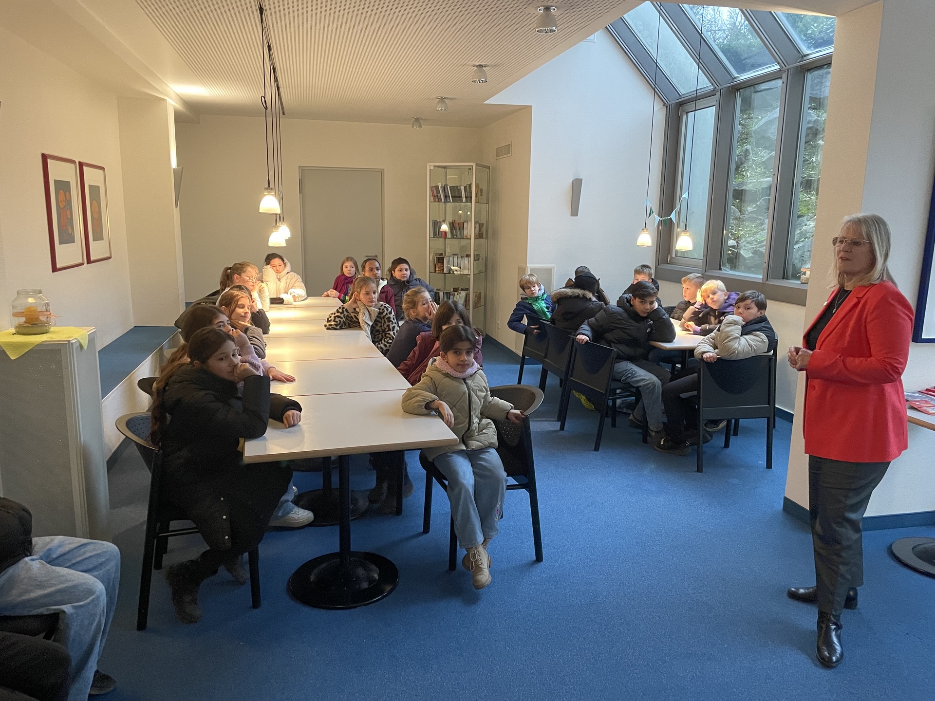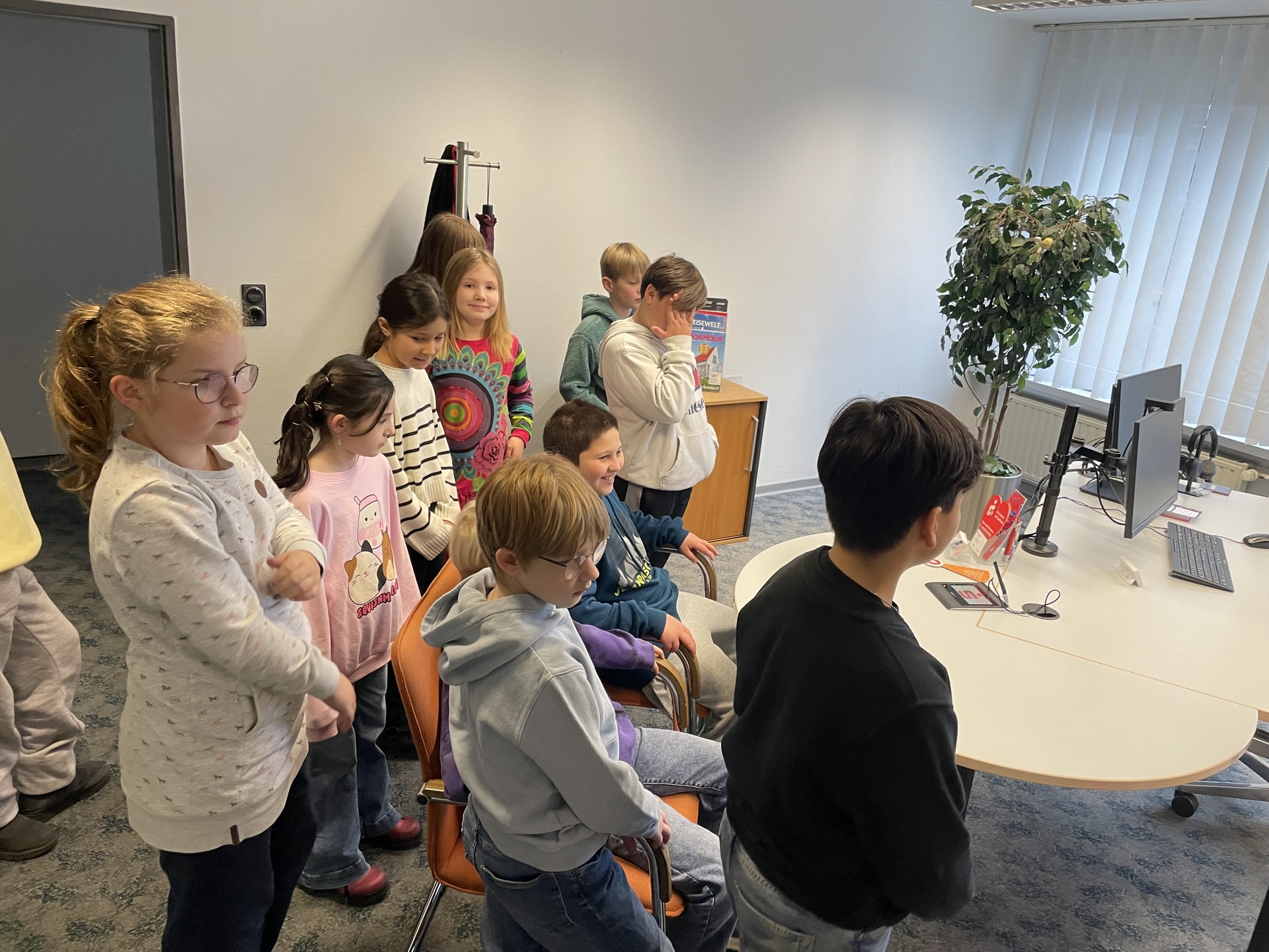 Unser Team Mitte beschäftigt sich zurzeit mit dem Thema Berufe. Am 11.12.2025 hatten wir die Möglichkeit, mit unseren 4ern die Sparkasse zu besuchen. Wir wollten unter anderem wissen, wie Sparen funktioniert, wie ein Tresor aussieht, wie sicher dieser ist und wie der Geldautomat funktioniert. An diesem Tag hatten wir viele neugierige Fragen!