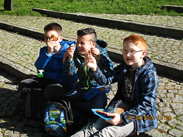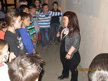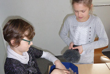 Wir haben eine kleinwüchsige Frau kennengelernt Sie war sehr nett und vor allem ehrlich. Wir haben sie mit Fragen bombardiert. Ich fand es auch cool, dass sie uns ihr Leben und ihren Alltag vorgestellt hat. Sie hat uns auch von ihren Problemen erzählt. Irgendwann sind wir wieder raus gegangen. Am Ein- und Ausgang stand ein Neandertaler. Wir haben noch eine ganze Weile gespielt und gefrühstückt bis die Igelklasse zurück kam. (Mia, Mäuse 3)