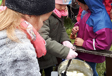 Wer hat schon einmal Wald-Mikado gespielt oder ist Gras-Ski gelaufen? Oder Zapfen mit einer Astgabel transportiert? Auch sogenannte Trittsiegel (Fußspuren) mussten den richtigen Tieren zugeordnet und Nadelbäume bestimmt werden.