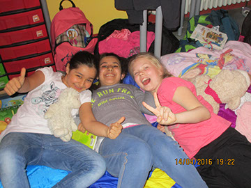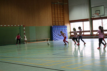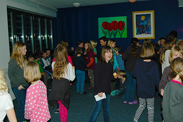 Das ganze Team Mitte war von Mittwoch, 2.3. bis Freitag, 4.3. in der Jugendherberge in Radevormwald. Zum Glück war das Wetter viel besser, als angekündigt. So konnten alle auch bei kalten Temperaturen viel draußen spielen. Das Eis haben trotz Temperaturen alle Kinder und die meisten Lehrer genossen. Zwischendurch wurden Bastelaktionen zum Thema Indianer veranstaltet. So konnte jedes Kind ein Indianerstirnband und einen Regenmacher basteln. Am letzten Abend gab es für alle Tänzer eine kleine Disco und für alle anderen einen Ruheraum, in dem Gesellschaftsspiele gespielt oder (vor)gelesen wurde.