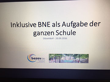 Am Mittwoch, den 28.09.2016 nahmen wir an der Fachtagung „Zukunft gestalten lernen-Bildung für nachhaltige Entwicklung in Theorie und Praxis” in Düsseldorf teil. Gemeinsam mit der Organisation bezev aus Essen stellen Frau Scherer, Herr Milotta und Herr Struck (Bildfabrik Wülfrath) unsere geplante Projektwoche zum Thema Globales Lernen im kommenden Februar vor.