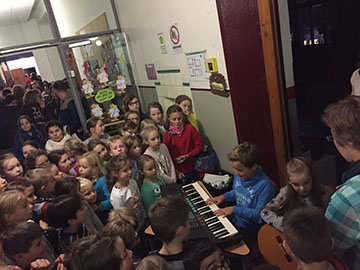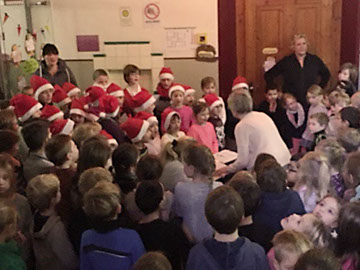 Singen im Flur! Außerdem hörten wir die Nikoläuse unserer Musik AG und die Föten-AG. Alle waren in den letzten