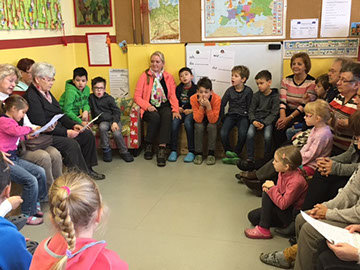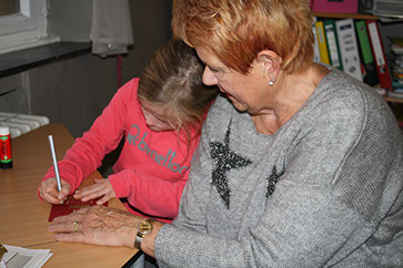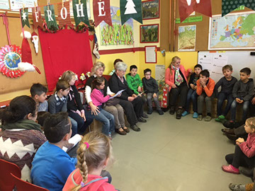 Für Kinder und Großeltern war der heutige Oma-Opa-Tag sicherlich ein besonderes Ereignis. Viele Großeltern drückten für zwei Stunden die Schulbank, hörten und sangen Lieder, ließen sich Gedichte vortragen, bastelten oder malten mit dem Enkelkind und erzählten, wie sie früher Weihnachten gefeiert haben. Da wurde der bunte Teller erklärt, und dass man zu Nikolaus auch schon Gedichte aufsagen musste und was man geschenkt bekam. da hat so manches Parkschulkind noch einmal ganz genau nachgefragt. Die Großeltern haben neben der weihnachtlichen Stimmung einen kleinen Einblick in den Schulalltag der Enkelkinder gewinnen können und auch hier so manchen Vergleich zu früher gezogen. Die Kinder werden diesen Vormittag sicherlich lange in Erinnerung behalten, denn das gelernte Gedicht von Omas Schoß aus aufzusagen, ist schon etwas Besonderes. Und wer weiß, vielleicht werden unsere Kinder in vielen, vielen Jahren bei einem Oma-Opa-Tag davon berichten, dass es so etwas früher auch schon gab...