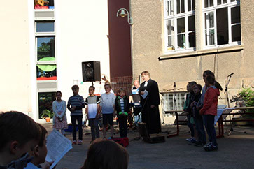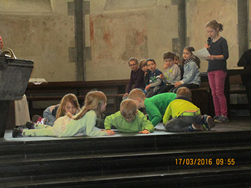 Heute Morgen haben die Parkschüler mit einem frühlingshaften Gottesdienst in der Evangelischen Stadtkirche das Osterfest eingeläutet. Bei einem Anspiel zum Thema „Leben im Wandel” verwandelten sich viele kleine Raupen begleitetet von Instrumenten zu einem schönen bunten Schmetterling. Einige Kinder bereiteten Fürbitten vor. Am Ausgang wurde für die Patenkinder in Indien und Peru gesammelt. Anschließend gab es in vielen Klassen ein Osterfrühstück natürlich mit bunt bemalten Eiern.