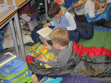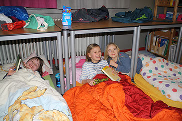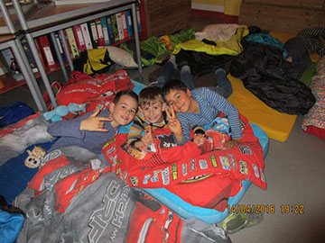 Nach den Osterferien freuten sich alle Kinder im Team Nord auf ihre Lesenacht. Den Anfang machten die Igel und Löwen. Vergangenen Donnerstag zogen die Hasen und die Mäuse für eine Nacht in die Schule ein! Dank der ersten langen Frühlingsabende konnten wir noch lange draußen auf dem Schulhof spielen. Anschließend machten wir es in unseren Klassen auf unseren Matratzenlagern gemütlich. Es wurde bis mitten in die Nacht vorgelesen und mit Taschenlampen weitergelesen. Einige Kinder fanden einfach kein Ende ... Beim Frühstück am nächsten Morgen waren sich alle einig: Können wir nicht noch eine weitere Nacht in der Schule schlafen???