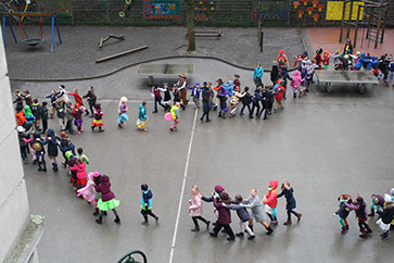 Am Donnerstag wurde in der Parkschule kräftig gefeiert. Zuerst wurde in jeder Lerngruppe gespielt, getanzt und gefrühstückt. Nach der großen Pause gab es die traditionelle Polonaise durch das ganze Haus und trotz Regen auch wie immer über den Schulhof. Die Musik hat nicht nur den Parkschulkindern gute Laune bereitet. Sicher war sie auch in einiger Entfernung noch zu hören. Danach haben alle Kinder, OGATA-Mitarbeiter und Lehrer gemeinsam in der Sporthalle weiter gefeiert. Dort gab es ein buntes Programm mit Liedern, Sketchen, Tanz und einer Tanzvorführung. Manche hatten danach immer noch nicht genug! Wer nach Unterrichtsschluss noch in der OGATA war, konnte auch dort noch vielen fröhlichen Jecken begegnen.