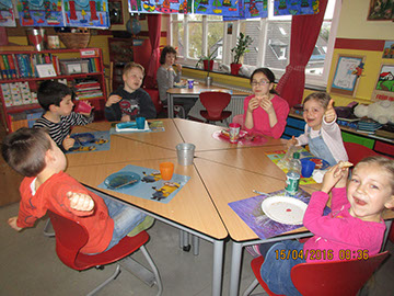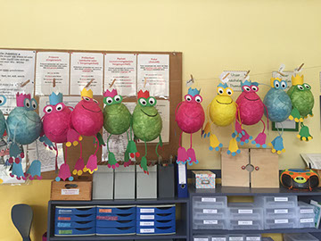 Wir organisierten flott um und feierten in der Schule. Die Kinder haben Martinsgedichte aufgesagt, Märchen wurden vorgelesen und Kinder spielten auf einem Instrument Lieder vor. Danach konnten sich alle am reichhaltigen, leckeren Buffet stärken. Am Ende leuchteten viele bunte kleine Frösche in der dunklen Schule und wir haben dazu Martinslieder gesungen. Ein großes Dankeschön an die vielen helfenden Hände der Eltern, die alles sooo perfekt organisiert hatten.