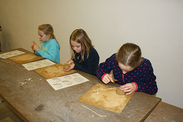 noch einmal ansehen und teilweise auch anfassen und ausprobieren. Mit einem Stück Feuerstein Leder durchzuschneiden ist gar nicht so einfach. Besonders viel Spaß hat die praktische Arbeit in der Steinzeitwerkstatt
