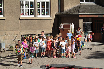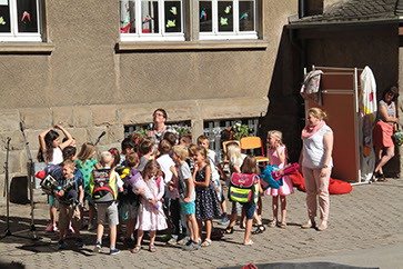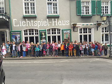 Passend zum Projektthema „Wülfrath” haben die Kinder der Stufe 1 und 2 des Team Nord an einer Stadtführung teilgenommen. Bei schönstem Herbstwetter führte die fachkundige Frau Hoffmann die Kinder durch „ihre” Stadt und zeigte ihnen bekannte oder auch unbekannte Stellen und konnte viele interessante Sachen dazu erzählen, so dass die Kinder jetzt sicherlich noch einmal ganz anders einige Häuser, Plätze, Figuren und Straßen wahrnehmen werden. Vielen Dank Frau Hoffmann!