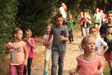 Gestartet wurde am Zeittunnel und die Kinder wanderten in Kleingruppen durch den Wald, um 15 Stationen zu besuchen.