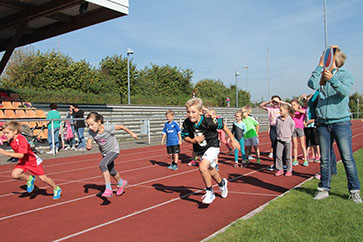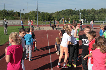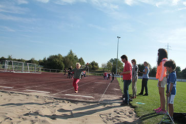 Bestens organisiert durch unsere Sportlehrer, unterstützt von vielen freiwilligen Helfern aus der Elternschaft und aufgrund des guten Wetters hatten alle einen schönen Tag auf der Sportanlage. Von den besonderen Leistungen, die hier erbracht wurden, wird man nach der endgültigen Auswertung noch bei unserer Siegerehrung auf dem Schulhof hören. An dieser Stelle auf jeden Fall schon einmal ein dickes Dankeschön an alle Helfer!