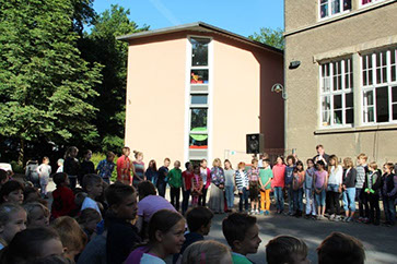 Traditionell verwandelt sich die Parkschule auch in der diesjährigen Adventszeit wieder in einen leuchtenden Adventskalender. Wer zurzeit abends oder morgens um die Schule läuft, kann jede Menge liebevoll gestalteter Fenster bewundern. Doch der lebendige Adventskalender bedeutet für die Schulgemeinde ja noch viel mehr. Morgens gibt es immer wieder Momente der gemeinsamen Vorfreude. So z.B. das Singen von Weihnachtsliedern im Treppenhaus, ein Vorspiel der Flöten-AG, das Überbringen der Päckchen für die Wülfrather Tafel und ein Besuch im August-von-der Tweer-Haus.