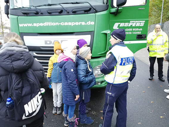 in die Gefahren des toten Winkels eingewiesen. Dabei haben die Kinder gelernt,