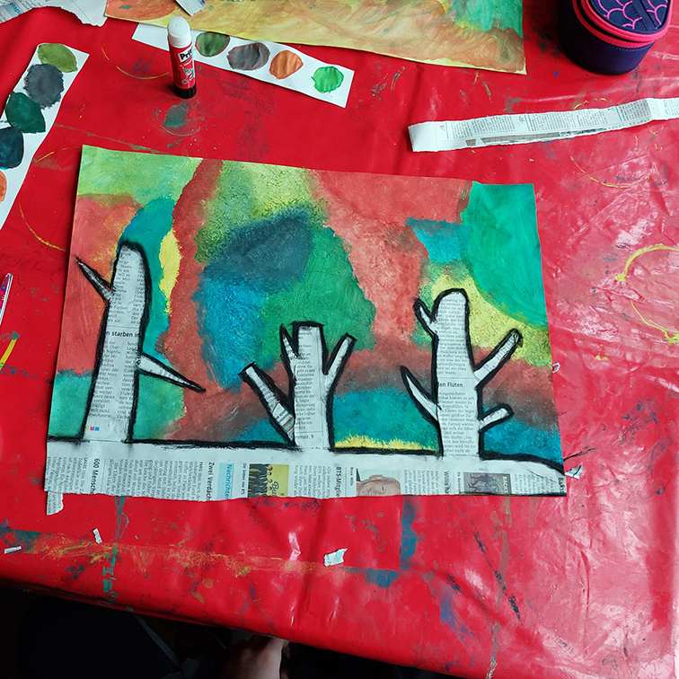 erstellt und anschließend die kahlen Bäume mit Zeitungspapier hinzugefügt. Auch